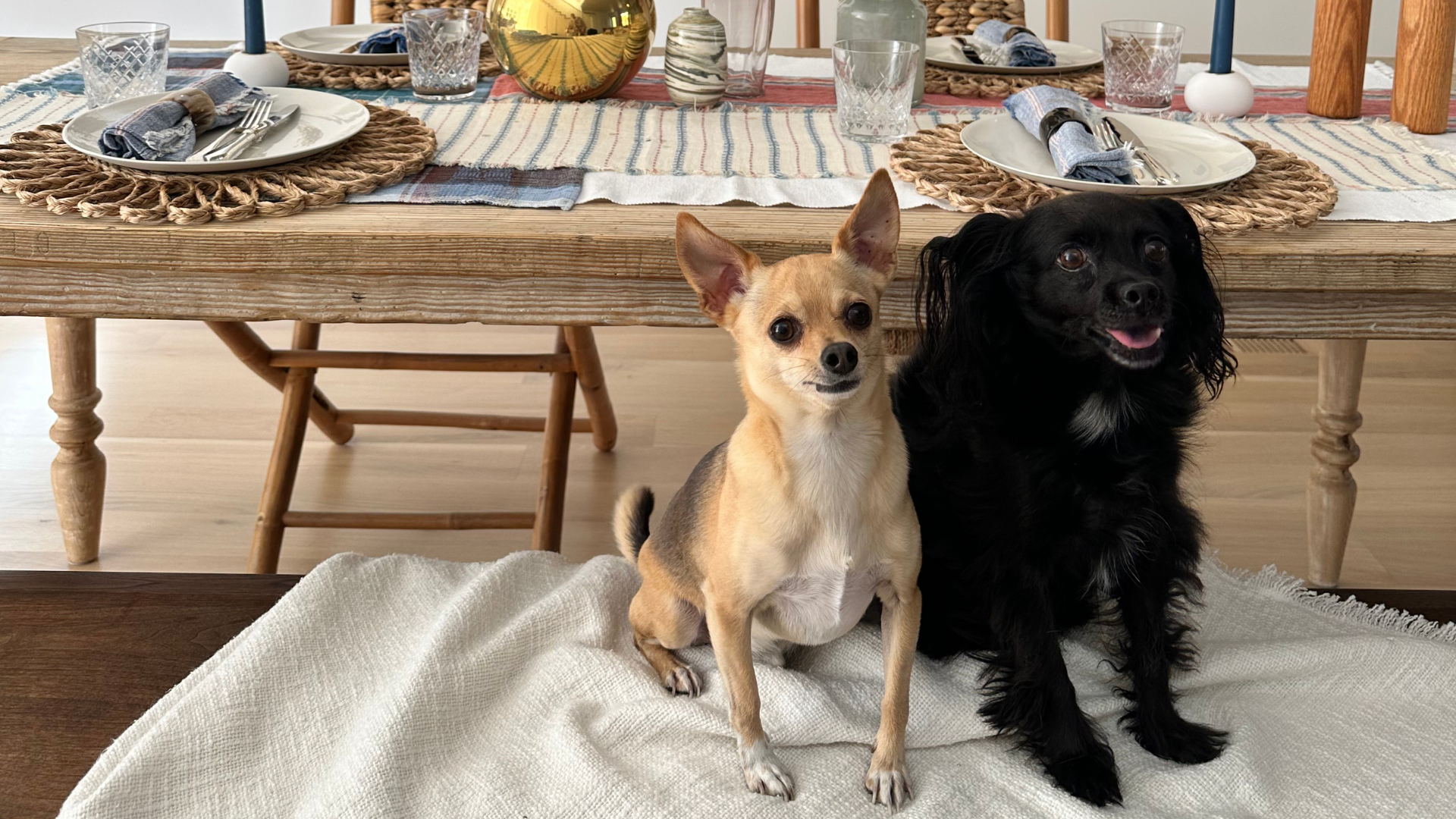 In the world of photography, they say never work with animals (or children!) and well…..I couldn't resist including these little guys in our tablescape! They were so well behaved……admittedly bribed with some turkey!